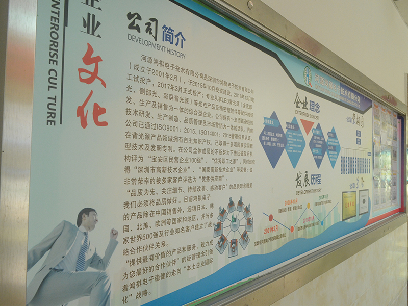 公司擁有河源、深圳、成都等專業(yè)制造工廠、配備模具、注塑、模切等生產一條龍供應鏈,公司現(xiàn)總人數(shù)600人,公司工控、車載背光源產品占有一定市場份額,獲得國家認可的高新技術企業(yè)。目前公司已進入高尖科技研發(fā)、中國制造的行業(yè)。
